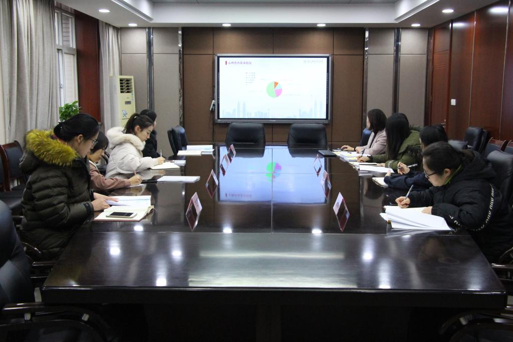 为更好地了解和掌握我院2019级新生的心理健康状况,提高心理健康教育工作的科学性和针对性,12月24日上午,大学生心理健康教育服务中心在办公楼406室召开了2019年心理普查反馈督导会。心理健康教育服务中心负责人、各系心理负责老师参加了此次会议。