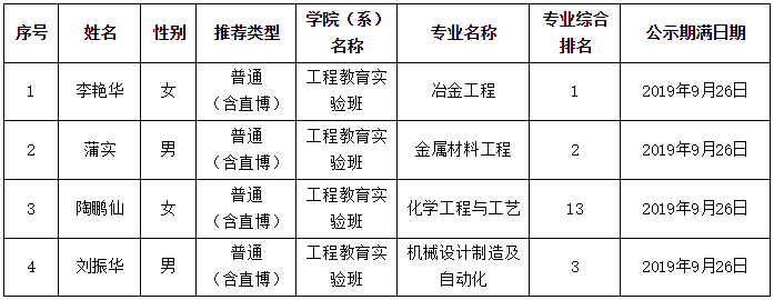 经学生申请,工程教育实验班推免工作领导小组研究决定,以下同学获得2020届免试研究生推荐资格,现予以公示。
