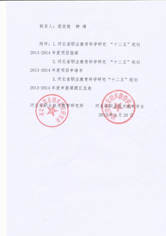 《河北省职业教育研究“十二五”规划2013-2014年度项目申报通知》近日已由河北省职业技术教育研究所下发,具体要求详见通知原文(下图,共3张)。