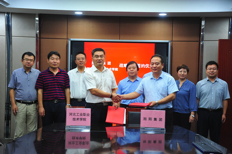 9月5日,河北工业职业技术学院与旭阳集团产学研校企战略合作框架协议签约仪式在南校区406会议室举行。旭阳集团贾运山副总裁、人力资源部郭修全总经理、设计院张宏亮常务副院长、我院党委书记王振杰教授、院长贾俊礼教授、副院长韩提文教授、招生就业指导中心、环境与化学工程系负责人出席了本次签约仪式。