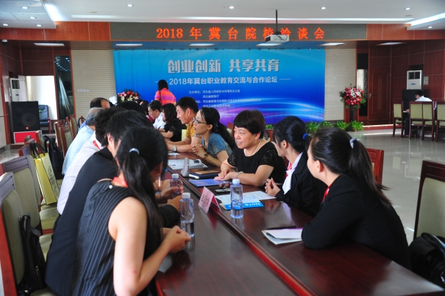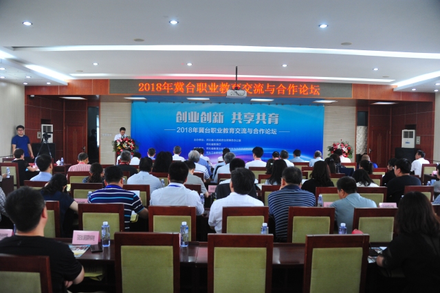 为促进冀台两地职业教育共同发展,推动两岸职业院校在创新创业教育方面形成优势互补、共同发展的机制,7月3日,2018年冀台职业教育交流与合作论坛在河北工业职业技术学院开幕。本届论坛由河北省人民政府台湾事务办公室和河北省教育厅联合主办,由河北省教育文化国际交流与合作协会职教分会与河北工业职业技术学院联合承办,论坛以“创业创新 共享共育”为主题,包括20名台湾职业教育界代表在内的120余名职业院校领导及代表参加了论坛。