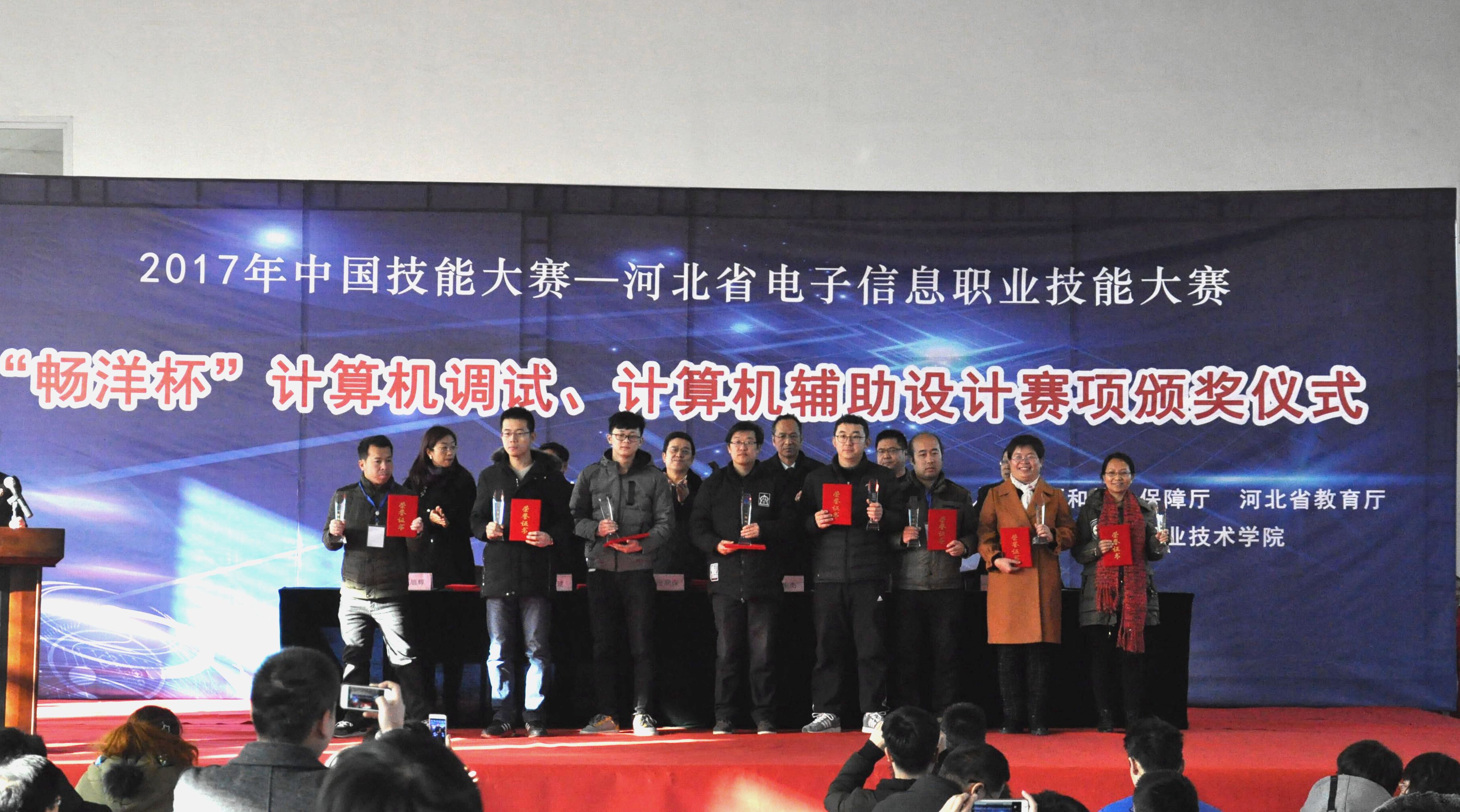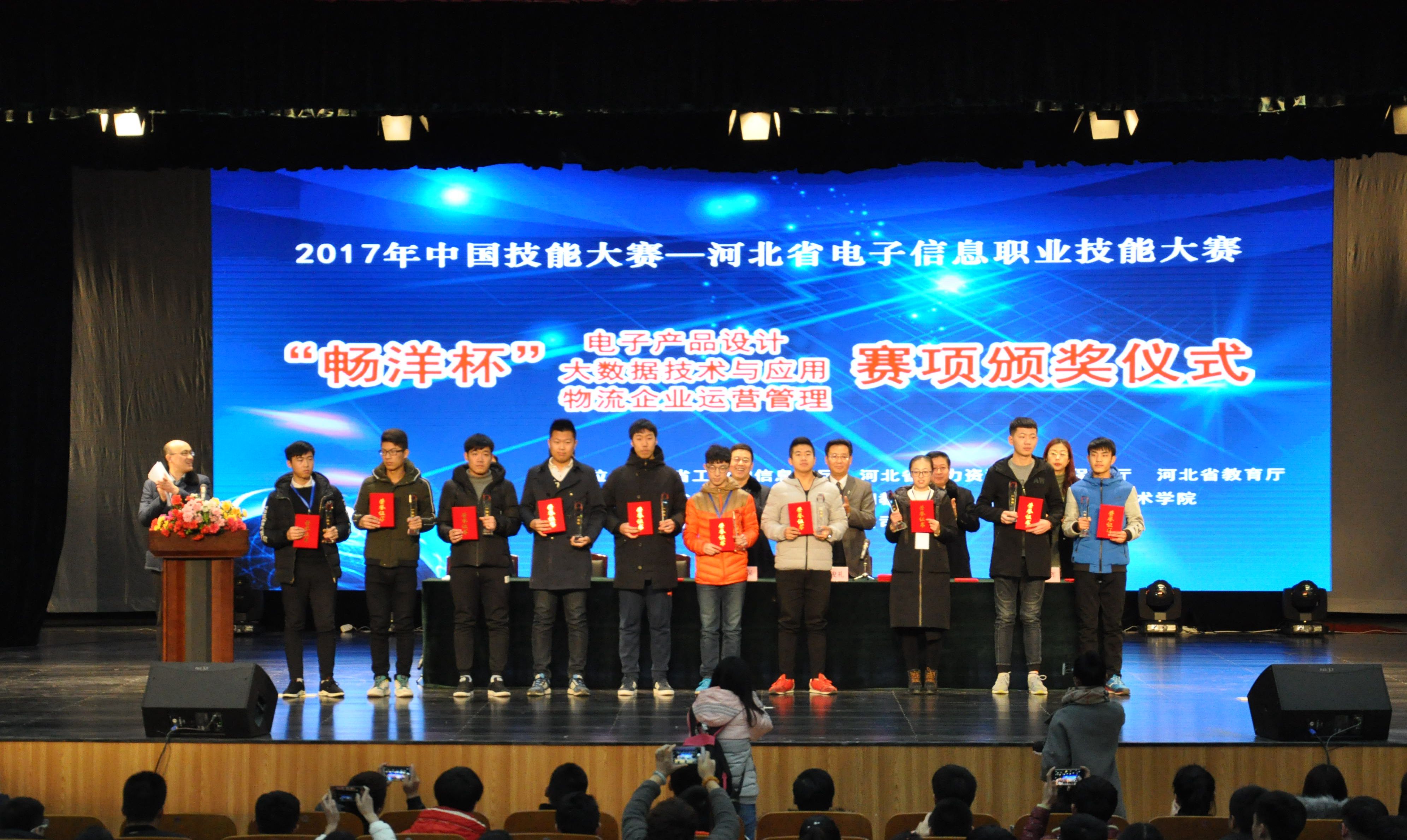 12月24日,2017中国技能大赛—河北省电子信息职业技能大赛在我院落幕,河北省工业和信息化厅段润保副厅长、河北省人力资源和社会保障厅赵增印处长、河北省工业和信息化厅人事处周久建处长、河北工业和信息化厅培训教育中心郭效勤主任、学院党委书记王振杰、院长贾俊礼出席了颁奖典礼。