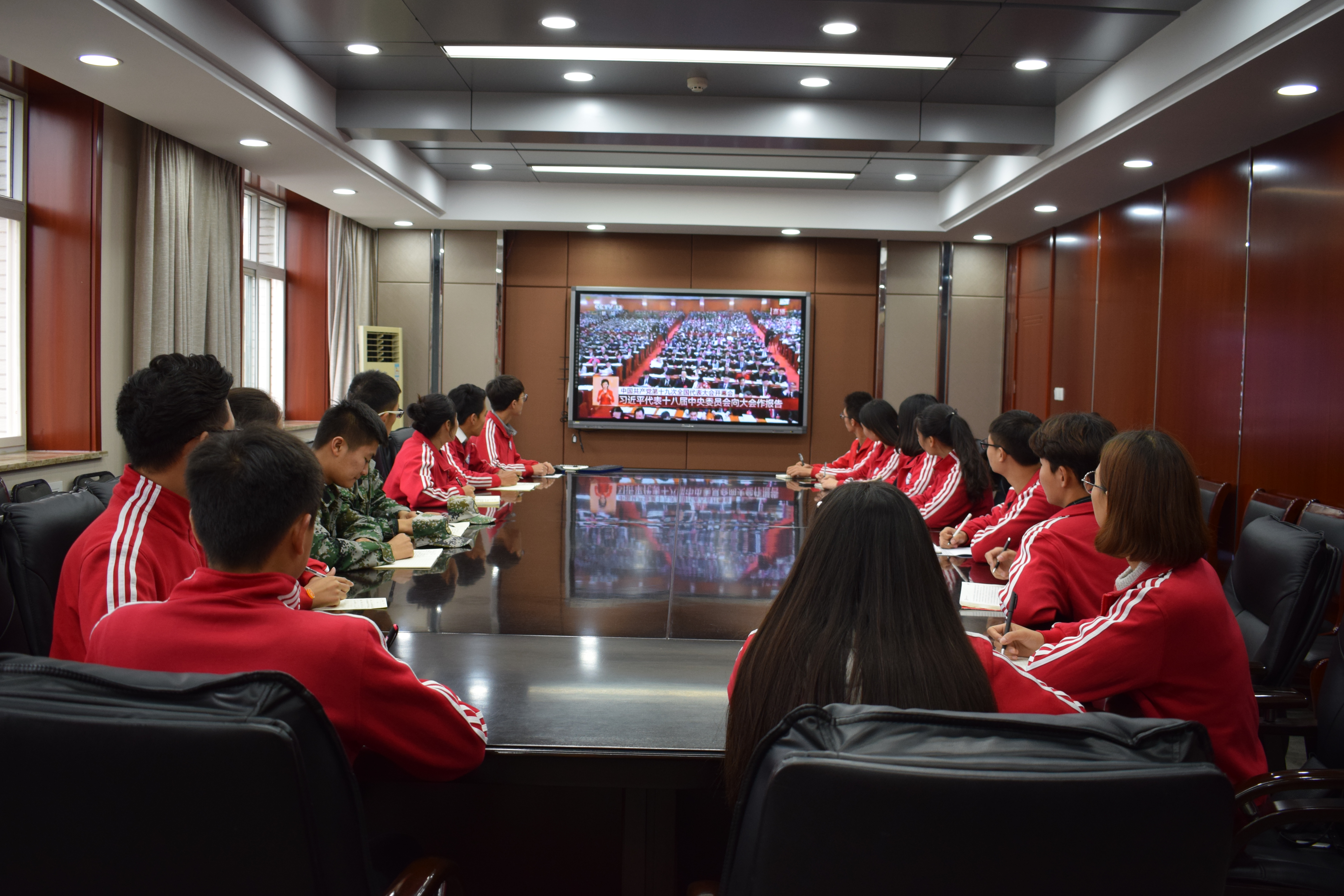 10月18日上午9时,举世瞩目的中国共产党第十九次全国代表大会在京隆重召开,学院各级团学组织通过报纸、电视、广播、网络等不同的途径关注十九大开幕。上午8点,团学干部们就早早来到406会议室,满心期待着党的十九大开幕。大会正式开始,同学们认真聆听习近平总书记代表第十八届中央委员会向党的十九大作报告,每到精彩之处,同学们纷纷拿出笔记本进行记录。