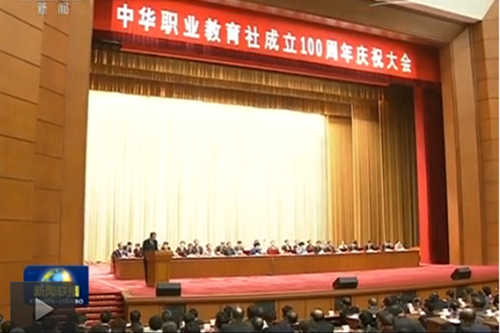 在中华职业教育社成立100周年庆祝大会上,习近平总书记发来贺信,中共中央政治局常委、全国政协主席俞正声出席大会并讲话,中共中央政治局委员、国务院副总理刘延东等国家领导人也出席了会议。