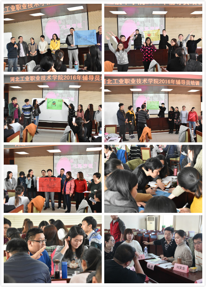 本次培训特别邀请了河北省辅导员精英团队为我院辅导员开展以“心、路、历、程”为主题的系统培训,培训将团队辅导、经验分享、体验互动等形式有机结合,将学员分为八个小组并以比赛积分的方式展开。主要内容包括团队破冰、精英养成记、与职能部门“面对面”座谈、工作特色展示、我是写手加油站、日常工作案例分析和处理、校园突发事件处理、学生诈骗案例调研、与学生面对面、辅导员精品项目展示、辅导员的烦恼和希望、辅导员职业倦怠及发展讲座等活动对辅导员的团队意识、突发事件处理、日常工作处理流程、归纳提炼学生工作方法等方面进行了系统、全面的培训。
