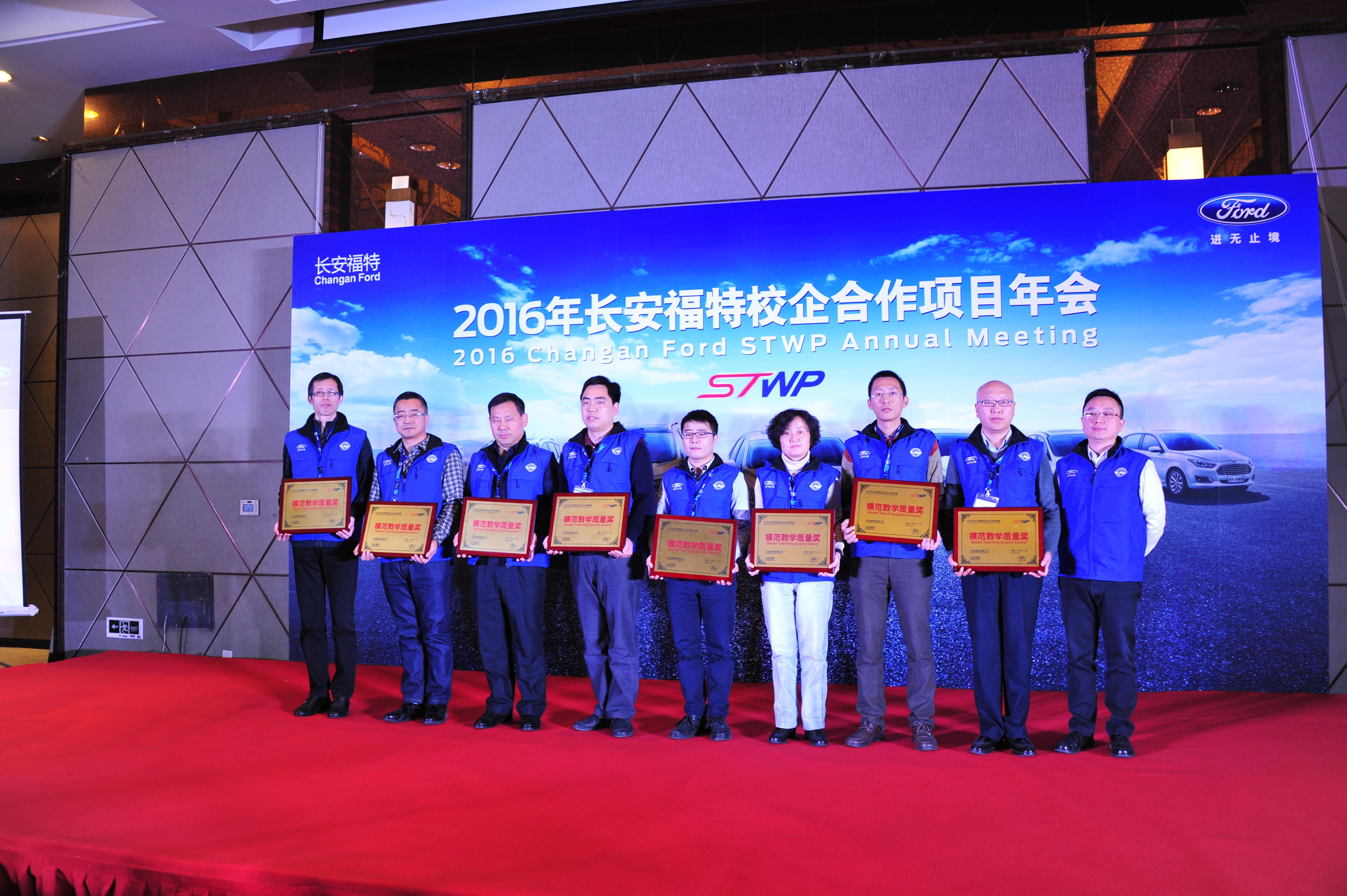 此次年会上,我学院屡获殊荣满载而归。在“2016年长安福特校企合作全国竞赛”中,我院取得全国第一的优秀成绩,并荣获2016年长安福特校企合作项目“最佳合作院校”、“模范教学质量奖”、“模范学生管理奖”称号,祁翠琴老师获“最佳项目负责人”称号,段永彬老师获“模范定向班教师”称号,闫炳强老师获“优秀定向班教师”称号,我院2015届长安福特定向班王鑫、靳志焕、郭红改、钤亚江、石尧、苏一鸣、段林宁、袁锋等8名学生获“优秀学生”称号。