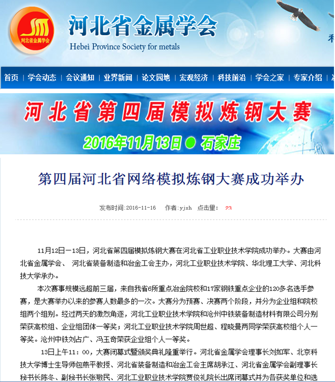 河北省金属学会网报道