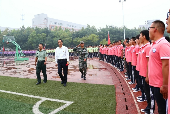 9月26日上午,我院2016级新生开学典礼暨军训成果汇报仪式在南校区体育场隆重举行。学院党委书记王振杰、院长贾俊礼、副院长付俊薇、韩提文、张福仁出席了大会。相关职能部门负责人,各系党政负责人、团总支书记,新生辅导员、全体2016级5300余名新生参加了大会。
