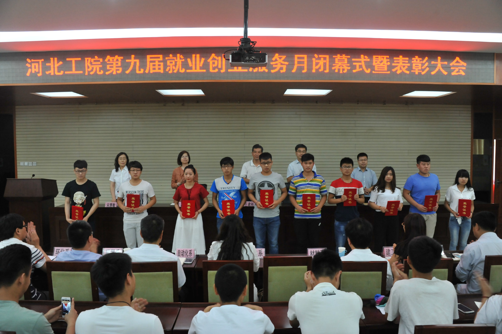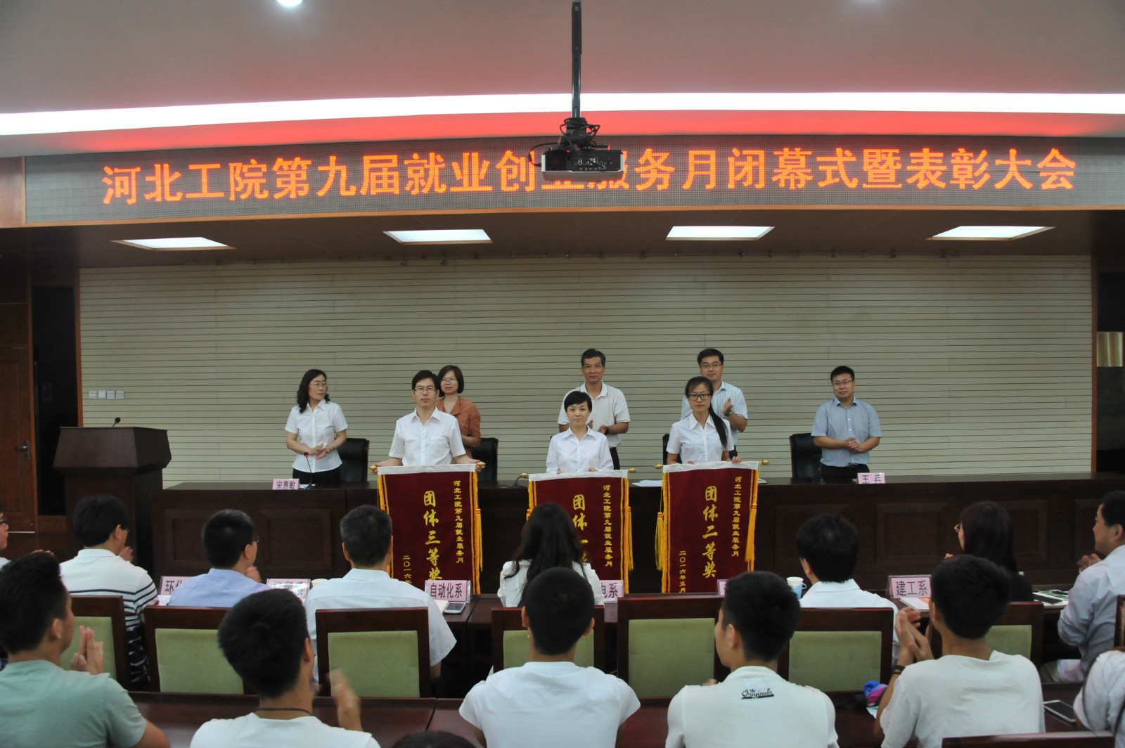 颁奖仪式中,招生就业指导中心孟延军处长宣读了获奖名单,出席会议的各位领导为获奖先进集体和个人颁奖。