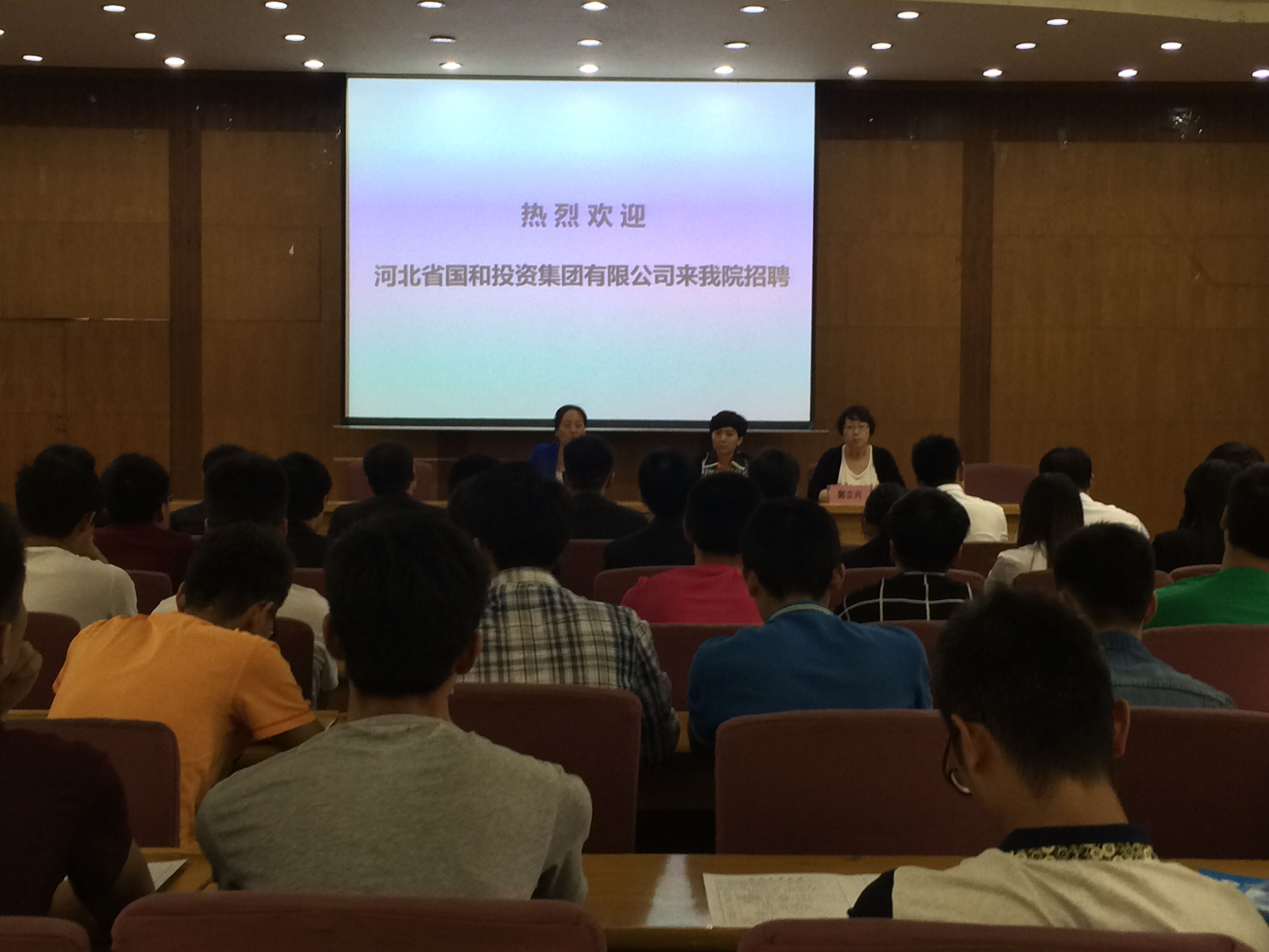 近日,广汇汽车华北大区、河北省国和汽车投资有限公司、保定轩宇汽车集团三家知名企业来我院招聘,最终成功预定80名2016届毕业生。