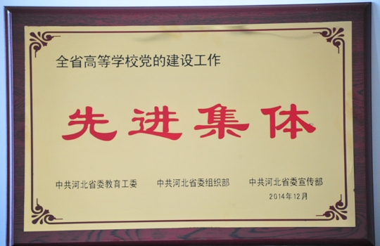 日前,由河北省委教育工委、河北省委组织部、河北省委宣传部联合表彰了全省高校党的建设工作先进集体、先进基层党组织、优秀共产党员和优秀党务工作者,我院党委荣获“全省高校党的建设工作先进集体”荣誉称号。