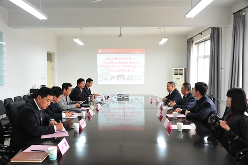 10月31日,我院与河北问鼎人力资源服务有限公司校企合作签约仪式在406会议室如期举行。企业经理杨建一行4人、学院贾俊礼院长出席,校企合作处、计算机技术系相关负责人参加了此次会议。