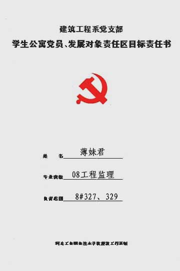 为进一步推动我院示范建设任务验收和人才培养工作评估的顺利完成,激发广大学生党员、发展对象的责任感和使命感,进一步增强基层党组织的创造力、凝聚力和战斗力,建筑工程系党支部开展系列活动,进一步深化学生党员、发展对象责任区制度,并签订《学生党员、发展对象责任区目标责任书》。