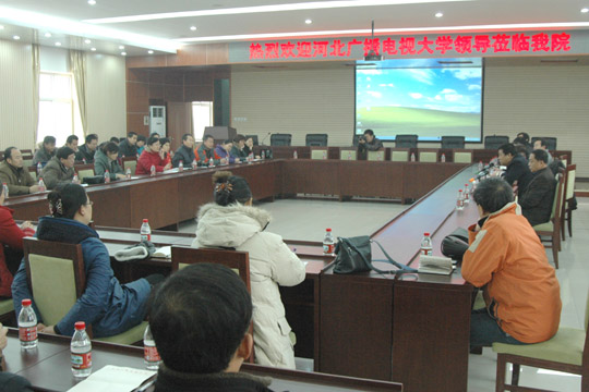 11月26日下午,河北广播电视大学张金强副校长一行50人来我院考察交流,我院王世龙副院长热情会见了客人们,双方就校企合作办学、教育教学改革及实训室建设方面进行了深入探讨。