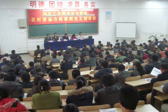 11月8日,200名石家庄近郊农民兄弟参加了我院组织的农村劳动力转移培训阳光工程——农业科技培训。石家庄市劳动就业局柴玉文主任、我院王世龙副院长出席开班仪式,、建筑工程系负责人及相关教师参加了仪式。