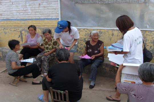 社会实践团队结合西陵地区的经济、社会和文化的发展状况,采取问卷调查、政策宣讲、参观学习、田间劳动、文化宣传等多种实践形式,在农民朋友中开展了一系列活动。在太平峪村,志愿者们开展了卫生防治措施宣传、科学发展观宣传、科普知识宣传册发放、公众环境意识问卷调查,通过调查,了解当地的卫生状况,普及科学卫生知识;在新畔石村,志愿者向村民们讲解如何预防甲型H1N1流感病毒的小常识,发放环保宣传册,宣传保护水源,节约用水;在五道河村,志愿者向村民宣传法律知识、医疗卫生知识、环境保护知识。每到一个村庄,志愿者还发放公民素质调查问卷、农村环境卫生状况问卷等问卷,调查当地的农民素质和环境卫生情况。