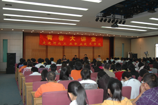 4月21日下午,由招生与就业指导中心与院团委联合组织的青春大讲堂第二场报告会在我院五楼报告厅举行,省工商联副主席常卫华同志、宣教处处长袁青同志出席,李军锁副院长主持了报告会,近300多名师生聆听了报告。