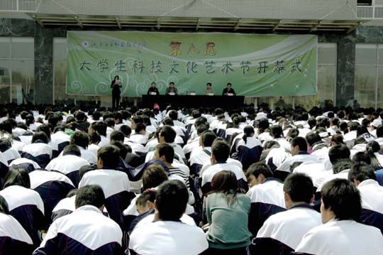 4月9日,我院第八届大学生科技文化艺术节开幕式在南校区举行,学工部、教务处、团委有关负责人、各系团总支、辅导员以及1200余名学生代表参加了开幕式。
