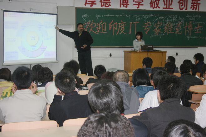3月27日晚7:00,计算机技术系聘请印度IT专家维克博士为2008级“北大青鸟”特色班做题为“抓住机遇、开创未来”的专题讲座。