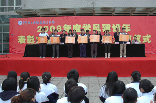 大会宣读了“2008年度学风建设年活动”先进集体和个人表彰名单,同时希望获奖学生面对荣誉戒骄戒躁,成绩代表过去,更应放眼未来,继续努力学习,发挥模范作用,为学院和社会做出更大贡献。