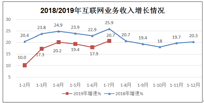 互联网业务收入保持较快增长。1-7月,我国规模以上2互联网和相关服务企业(简称互联网企业)完成业务收入6507亿元,同比增长20.7%,增速比去年同期回落5.2个百分点,但比上半年加快2.8个百分点。