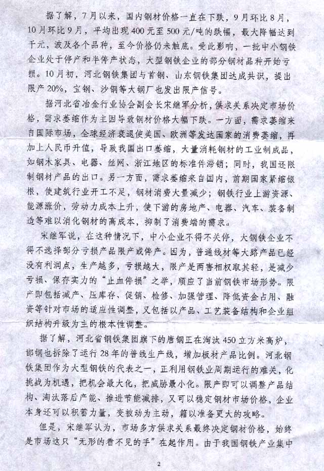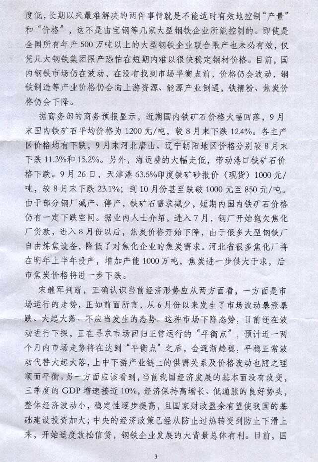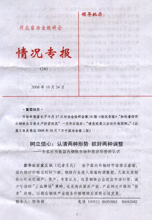 河北省冶金政研会情况专报:专家对当前国内钢铁市场和经济形势的认识