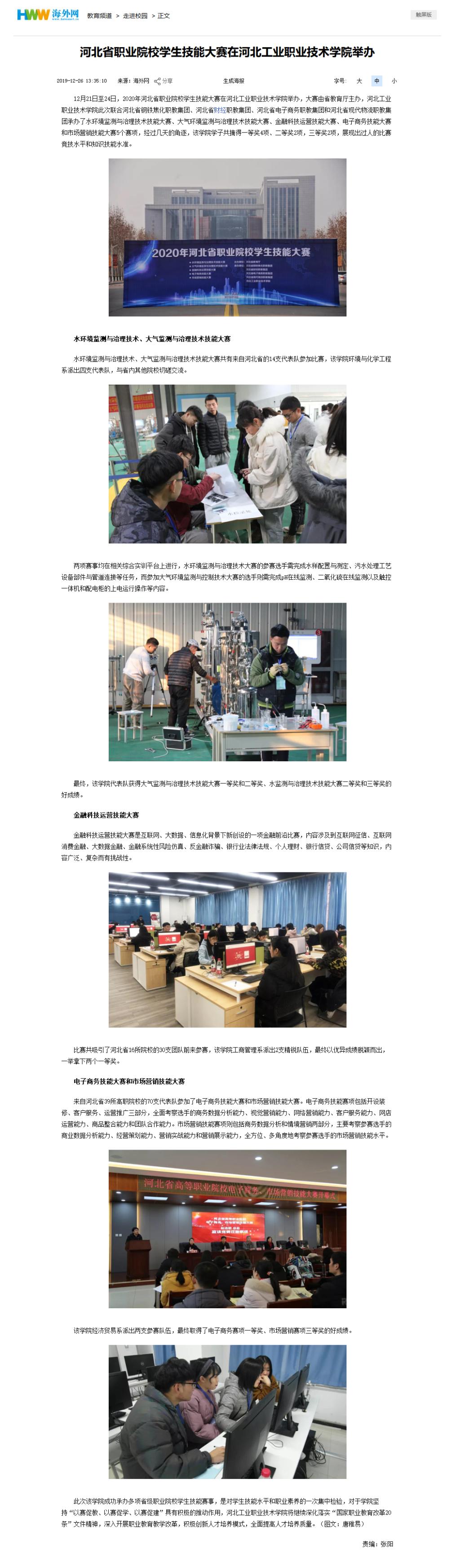 海外网(《人民日报》海外版官网)报道2020年河北省职业院校学生技能大赛在我院举办