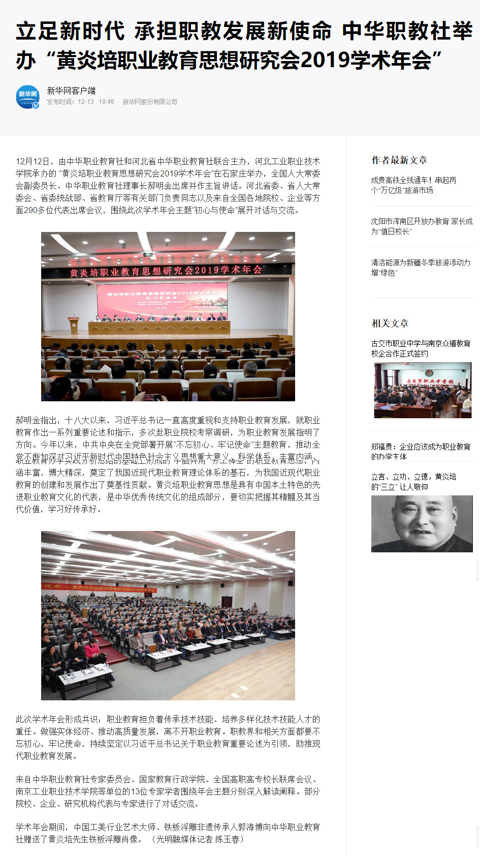 新华网报道黄炎培职业教育思想研究会2019学术年会在我院举办