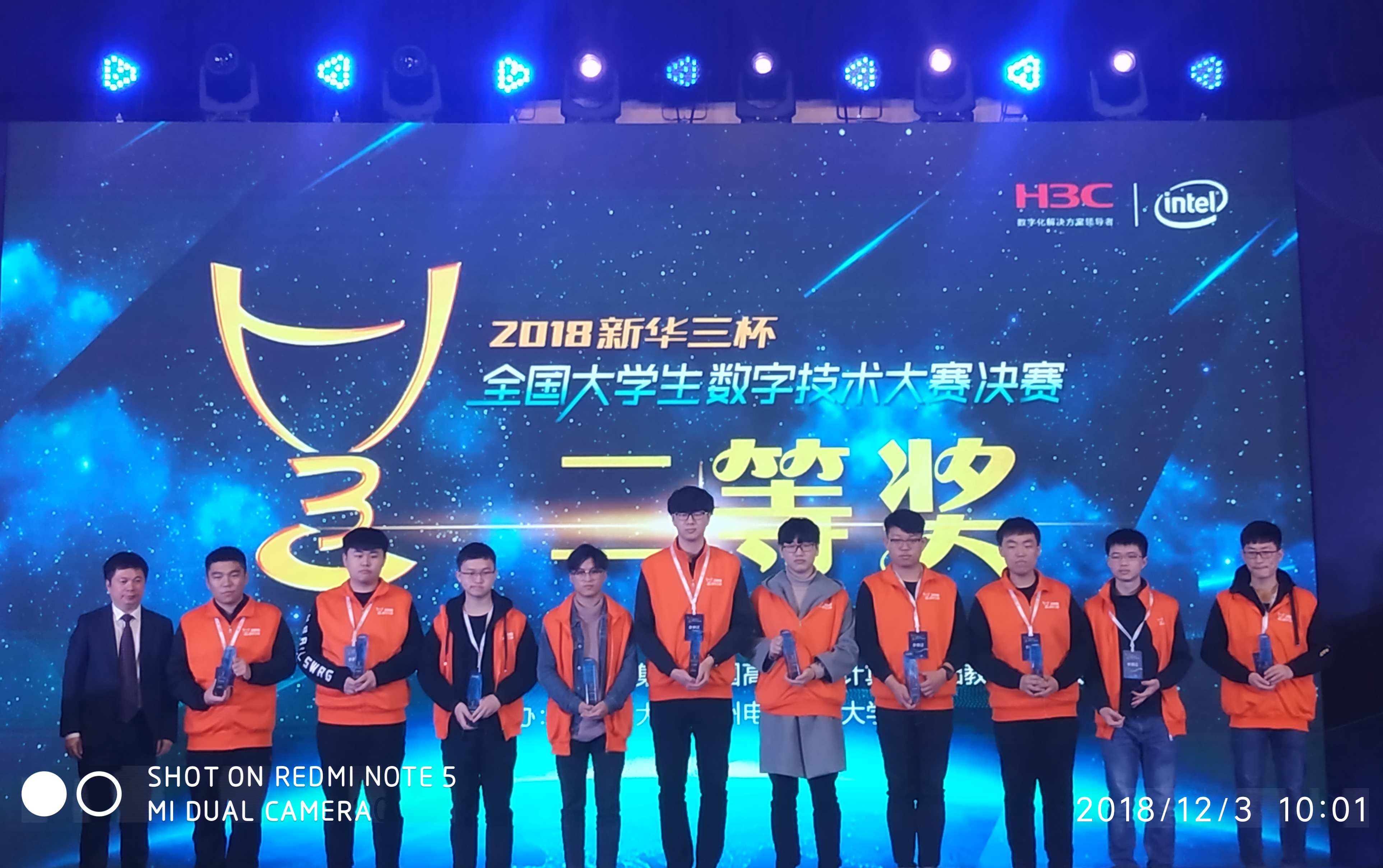日前,由新华三集团和全国高等院校计算机基础教育研究会联合主办,新华三大学、杭州电子科技大学承办的第八届“新华三杯2018年全国大学生数字技术大赛”在杭州圆满落幕。我院计算机技术系五名同学从全国7000余名选手中脱颖而出,进入决赛,并喜获一等奖2项,二等奖2项,优胜奖1项。本次大赛实现了我院该赛项10年来一等奖零的突破。
