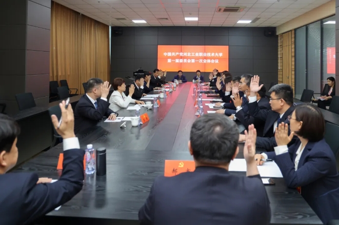 大会号召,高举中国特色社会主义伟大旗帜,更加紧密地团结在以习近平同志为核心的党中央周围,牢记初心使命,锐意开拓进取,勇毅前行、接续奋斗,奋力推进高质量发展,为建设特色鲜明、全国领先的高水平职业技术大学而努力奋斗!为加快建设经济强省、美丽河北,以中国式现代化全面推进强国建设、民族复兴伟业做出新的更大贡献!