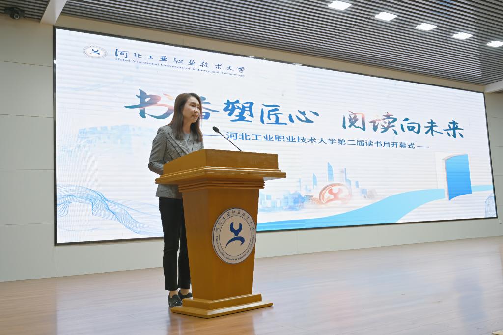 4月23日下午,开云在线(中国)唯一官方网站“书香塑匠心 阅读向未来 ”第二届读书月活动启动仪式在图文信息中心一楼报告厅举行,学校各院系党组织书记及师生代表参加仪式。