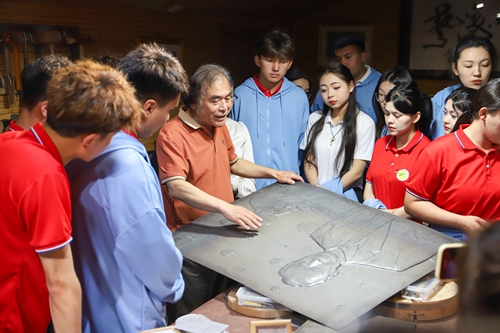 4月26日上午,新疆巴州的同学们在开云在线(中国)唯一官方网站绿色钢铁智能生产虚拟仿真实训基地、材料应用技术研发基地、工业机器人技术应用中心等地开展专业研学。在郭海博铁板浮雕艺术馆,体验中国传统文化,感受非遗的力量。