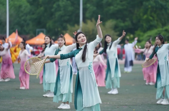 精彩纷呈的开幕式表演,凸显地域文化、传统文化和专业文化。翻飞的舞龙、舞狮带来的表演《龙腾狮跃耀中华》,体现着中华民族特有的精神,展示出团结的力量。以春天题材为背景的舞蹈《春颂》,舞者轻柔的舞姿仿佛春雨把万物洗涤的那般清新明亮。由计算机技术系张晓旦教授和毕业学生共同带来的井陉拉花民俗艺术表演《丰收的节日》,突出中华体育文化优秀项目和合协同的特点。精彩啦啦操表演《同爱同在》表达了工职大学子对体育精神的最好诠释,更是对团结、友爱、互助精神的生动体现。同时在西柏坡校区由校园十佳歌手带来的歌曲《青春的样子》展示了青春最美好的模样,情景舞蹈《奋斗 向未来》体现了青年学子团结一致、迎难而上、守正出新,共同书写智慧建造新的篇章。民族舞蹈《大好河山》展示了、同学们誓做追风少年,坚信有梦的地方就能展翅翱翔。啦啦操《相亲相爱》展现了西柏坡校区团结一心,携手共进的美好愿景。