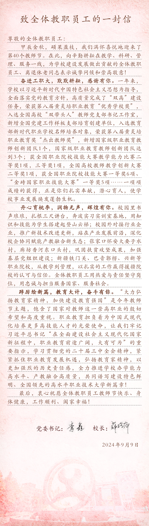 致全体教职员工的一封信