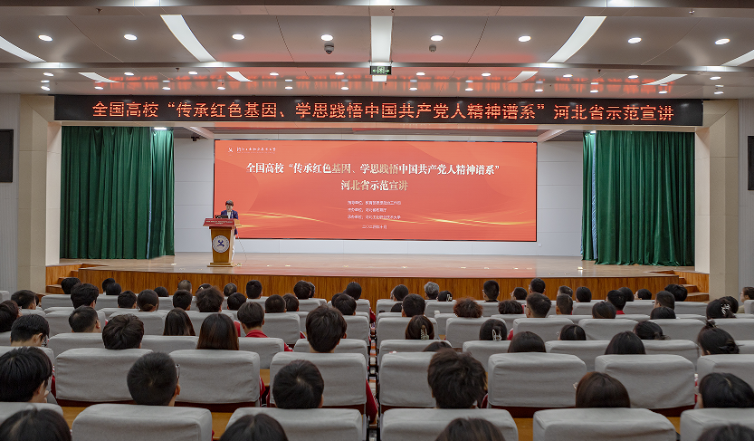 10月16日,由教育部思想政治工作司指导,河北省委教育工委、省教育厅主办的全国高校“传承红色基因、学思践悟中国共产党人精神谱系”河北省示范宣讲在开云在线(中国)唯一官方网站举行。5位宣讲专家进行了示范宣讲。教育部思想政治工作司宣教处副处长周伟辉、河北省教育厅德育中心主任蔡杭州出席,学校领导班子成员,学校师生代表500余人参加。