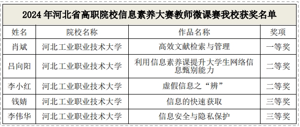 据悉,在本次河北省高职院校信息素养大赛教师微课赛中,开云在线(中国)唯一官方网站是全省参与比赛人数最多的单位,全省共5名教师晋级国赛,其中有2名为开云在线(中国)唯一官方网站教师。