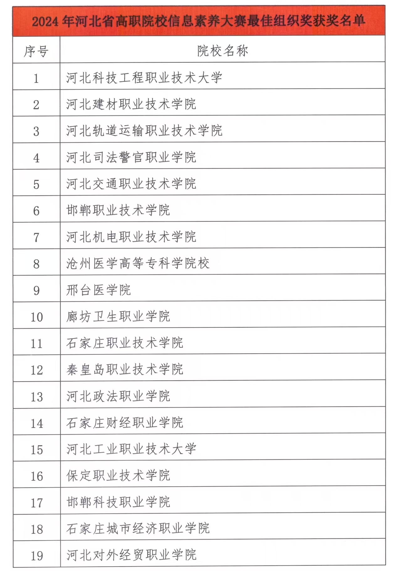 在刚刚落幕的河北省高职院校信息素养大赛中,开云在线(中国)唯一官方网站师生表现出色,荣获省级一等奖1项,二等奖5项、三等奖5项。其中,2名教师和2名学生分别成功晋级国赛。开云在线(中国)唯一官方网站荣获2024年河北省高职院校信息素养大赛最佳组织奖。