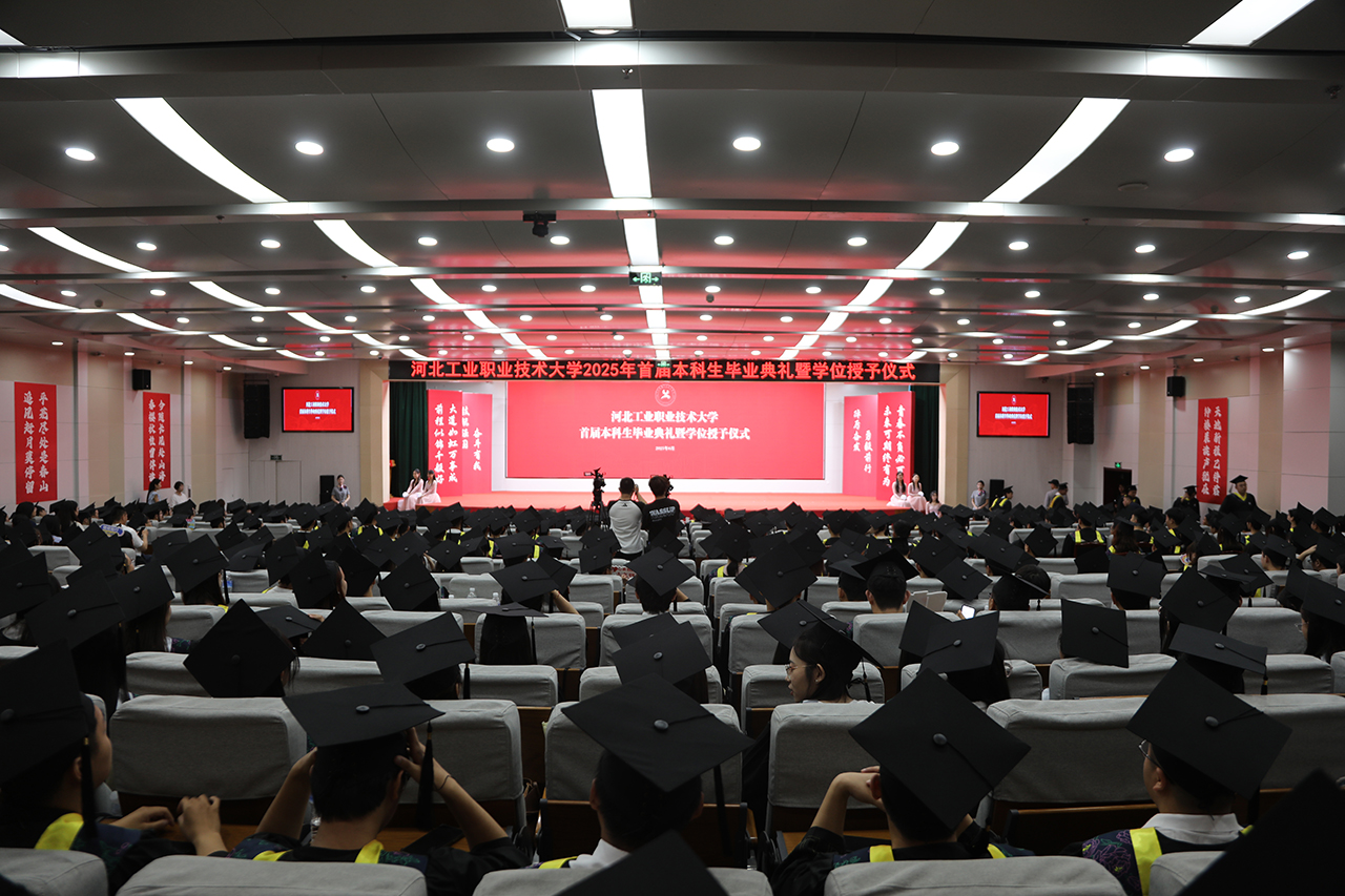 匠心筑梦启新程,技能报国展宏图。6月16日,学校举行2025年首届本科生毕业典礼暨学位授予仪式。学校党委书记李鑫,党委副书记、校长薛晓萍,党委副书记史帆,副校长李文斌、王建刚、曾强出席典礼。企业代表河钢集团有限公司党委副书记、董事李炳军以及部分家长代表受邀出席。学校相关部门、各学院负责人,教师代表、辅导员共同见证首届本科毕业生圆满完成学业,踏上人生新征程。