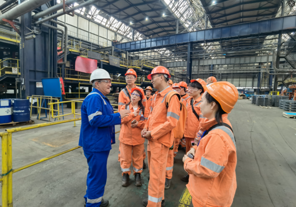 实习期间,师生深入高炉中控室、转炉车间、热轧冷轧生产线等核心区域,全面参与设备操作、联合巡检和案例解析等实战环节。在塞方工程师指导下,学生系统学习了欧洲标准下的高炉智能监测、转炉自动化吹炼、热轧板形控制等先进工艺,并在对比中欧技术差异的过程中,深化了对钢铁技术的理解,提升了解决实际工程问题的能力。
