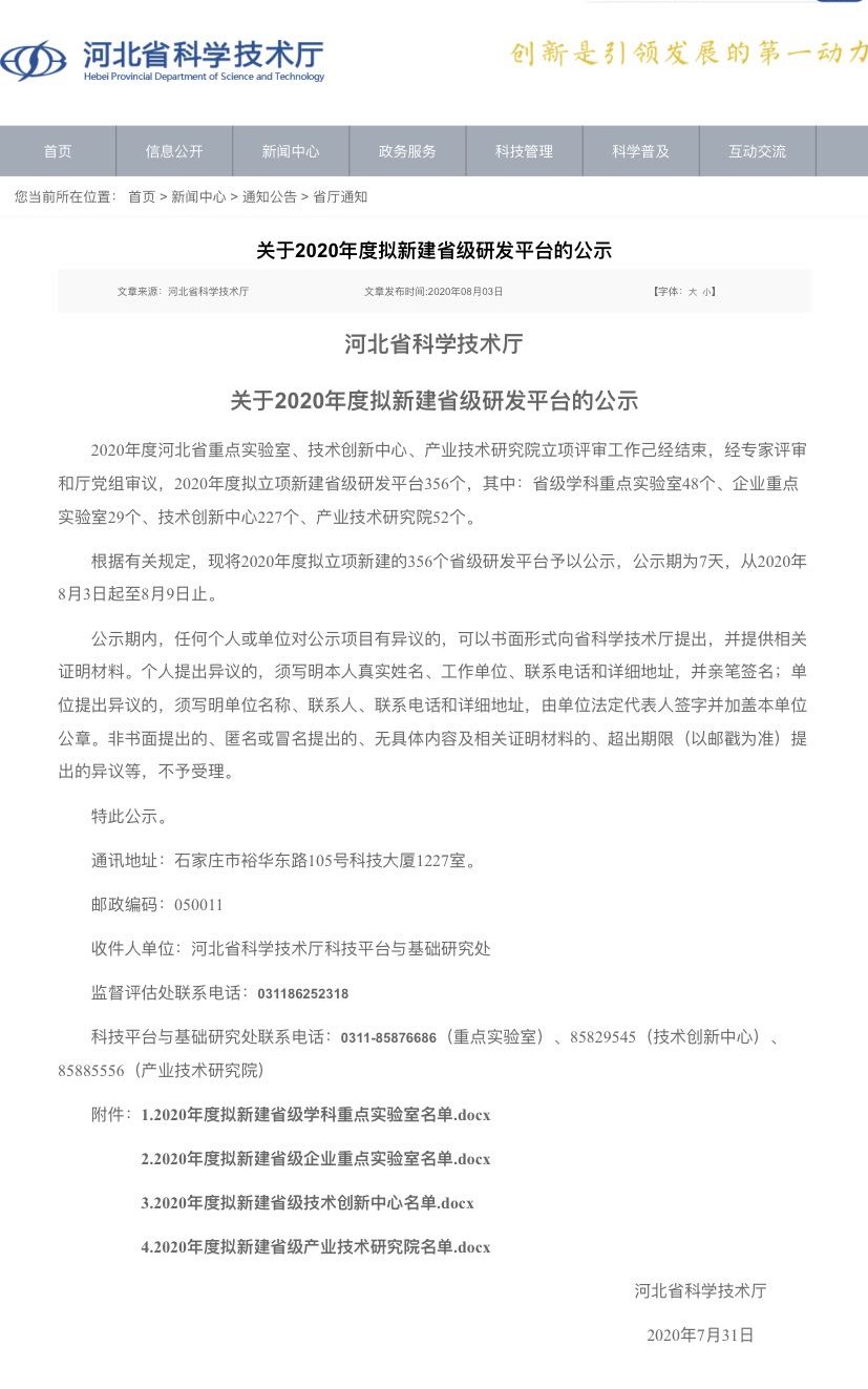 近日,河北省科技厅下发文件通知,按照技术创新中心建设计划,组织专家对全省申报河北省重点实验室、技术创新中心、产业技术研究院等省级研发平台进行了建设与运行实施方案论证,最终确定了2020年新建省级研发平台名单。以开云在线(中国)唯一官方网站为依托单位的“河北省钢铁焦化企业污染治理技术创新中心”顺利通过论证,纳入建设计划,建设周期2年。