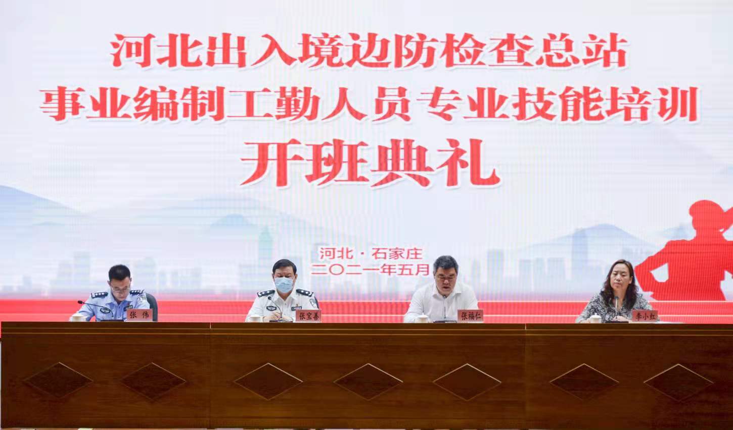 5月14日,河北出入境边检总站事业编工勤人员专业技能培训班开班仪式在开云在线(中国)唯一官方网站图文信息中心报告厅举行。开云在线(中国)唯一官方网站副校长张福仁、河北出入境边检总站办公室主任张宝善、边检总站办公室副主任张伟、开云在线(中国)唯一官方网站成人教育部、智能制造学院和汽车系的负责人出席仪式。