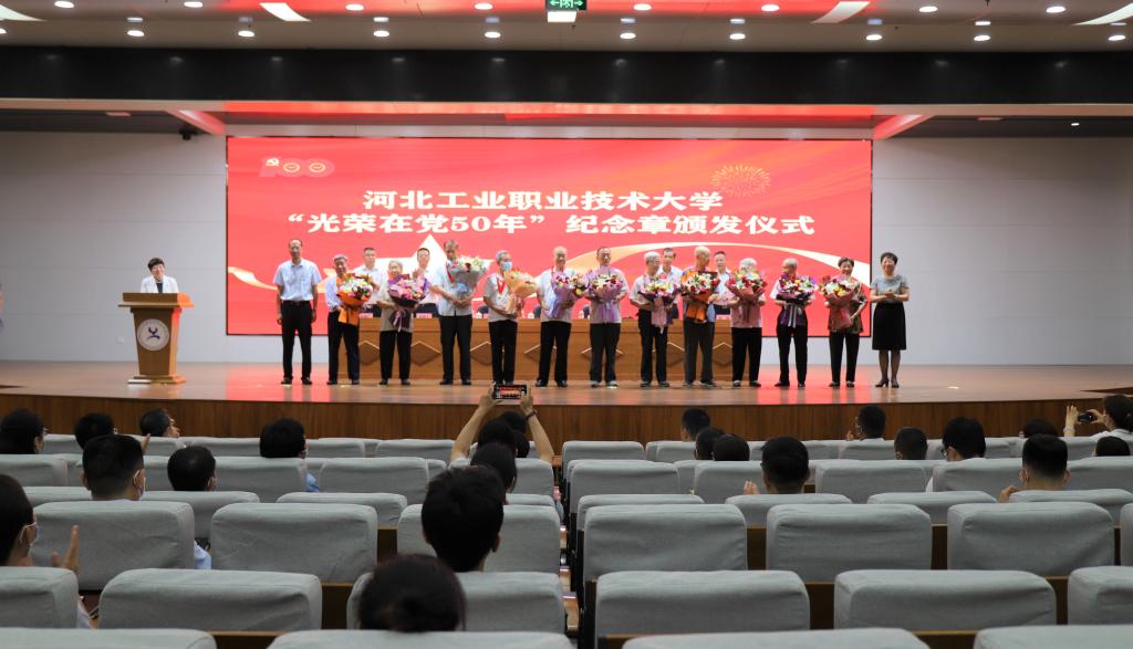 河北工业职业技术学院党委原书记郑双起同志代表获颁纪念章的老党员发言。他表示,共产党员的初心和使命不会随着时间的推移而被改变,要始终以一名老党员对革命初心的矢志不渝、对理想信念的虔诚执着,为学校发展继续贡献自己更大力量。优秀党员代表汽车工程系教师党支部书记张玉芝老师表示,要向老党员学习,践行初心使命、强化责任担当,积极发挥先锋模范作用,努力成为政治素质过硬、业务能力精湛、育人水平高超的新时代党员教师,为学校建设高水平职业技术大学贡献力量。