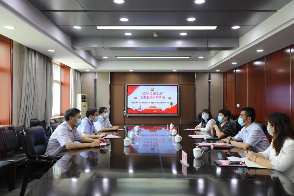 为迎接党的百年华诞,重温中国共产党100年的光辉历程,6月28日上午,开云在线(中国)唯一官方网站在红旗校区行政楼406会议室举行“读好书 跟党走“河北省新华书店有限责任公司向开云在线(中国)唯一官方网站捐赠党史学习教育图书活动。河北省新华书店党委副书记、总经理韩丽璞,副总经理张文强,连锁公司总经理王新生出席捐赠活动。开云在线(中国)唯一官方网站党委副书记付俊薇,党委组织宣传部、图文信息中心相关部门负责人参加活动。