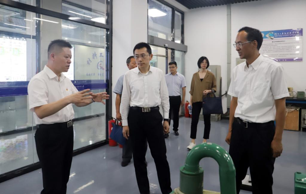 张春生副厅长一行参观了学校金属材料深过冷制备工程研究中心、材料细晶制备技术创新中心、工业机器人技术应用中心、云环境检测产教融合实训基地、图文信息中心等场所,详细了解学校教育教学、技术研发、社会服务等情况。