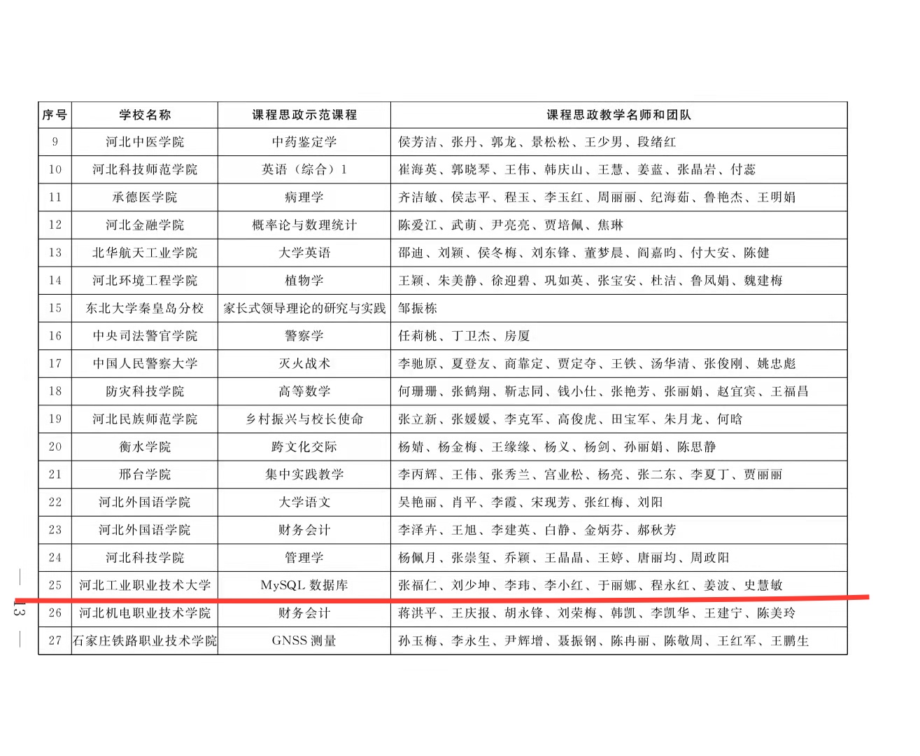 近日,省教育厅公布了河北省课程思政示范项目建设名单。开云在线(中国)唯一官方网站申报的继续教育类课程《MySQL数据库》入选。该评选是根据《河北省教育厅关于开展课程思政示范项目建设工作的通知》要求,深入实施《高等学校课程思政建设指导纲要》,开展的课程思政示范课程、教学名师、教学团队和教学研究示范中心评选工作。