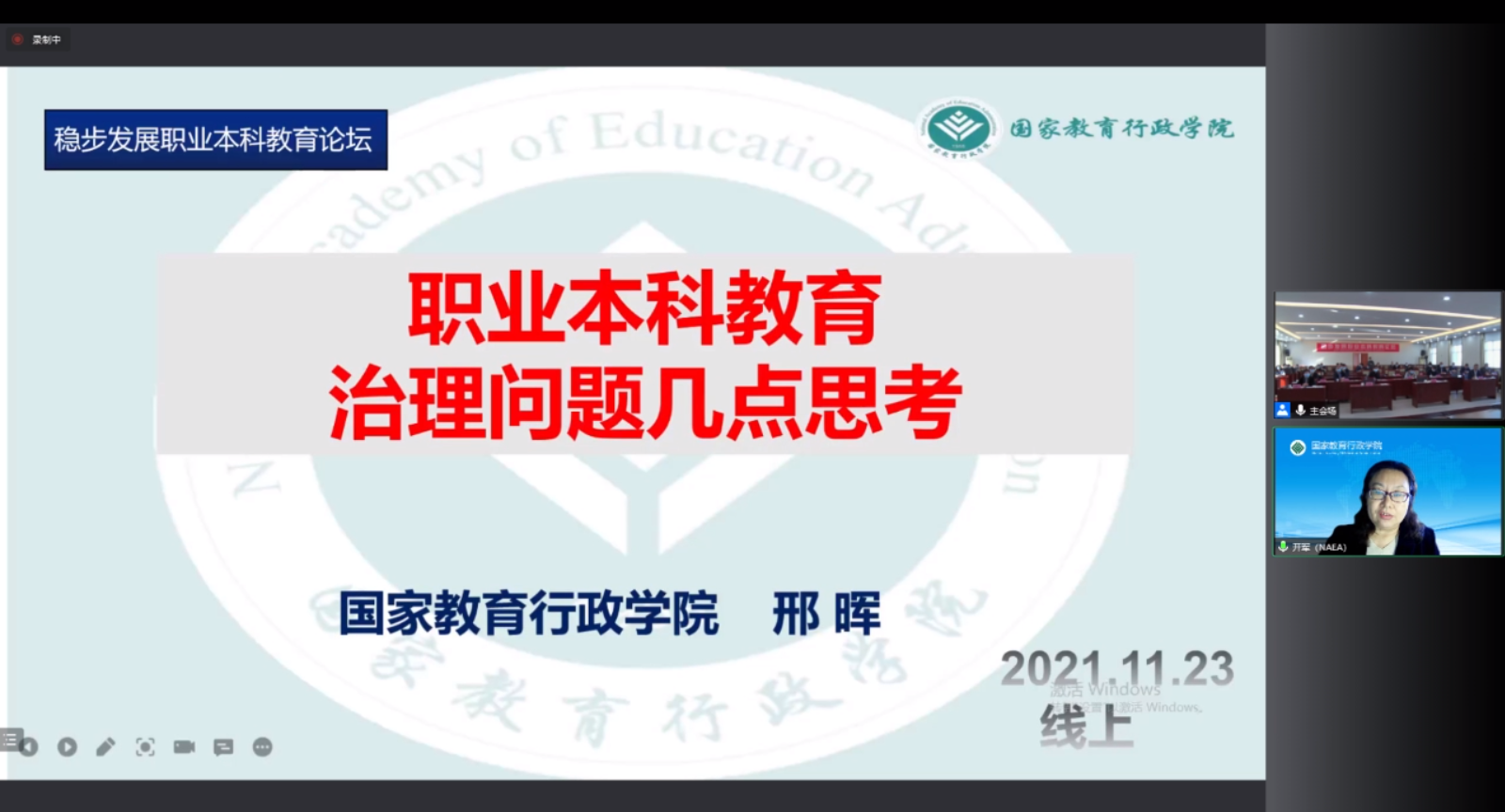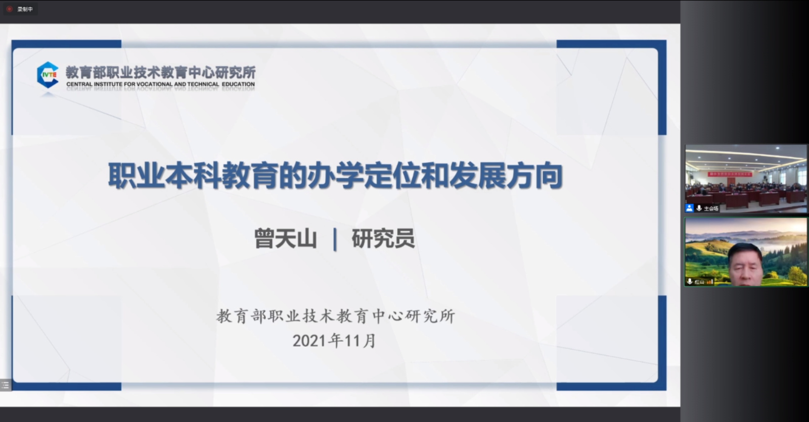 教育部职业技术教育中心研究所副所长曾天山从理论和实践两方面,就稳步发展职业本科教育的有效路径做了分析;中国职业技术教育学会副会长孙善学就职业本科发展目的及其本质特征做了阐述;国家教育行政学院职业教育研究中心主任邢晖谈到了职业本科教育的治理重点问题;全国职业高等院校校长联席会议主席董刚以科学研究为切入点,剖析了高职教育实现高质量发展的内在逻辑;国家督学、陕西省职业技术教育学会会长崔岩就优化类型定位,创建职业本科教育办学特色作了报告;开云在线(中国)唯一官方网站校长薛晓萍结合开云在线(中国)唯一官方网站的办学实践,阐述了高标准建设职业本科教育的发展路径。