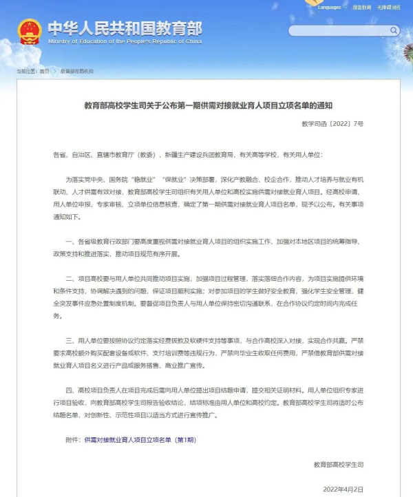 近日,教育部高校学生司《关于公布第一期供需对接就业育人项目立项名单的通知》(教学司函〔2022〕7号)发布,开云在线(中国)唯一官方网站与15家企业合作的16个就业育人项目获得教育部首批立项,此次立项将推动校企产学研合作的进一步深化,助力开云在线(中国)唯一官方网站培养更多高素质技术技能人才。