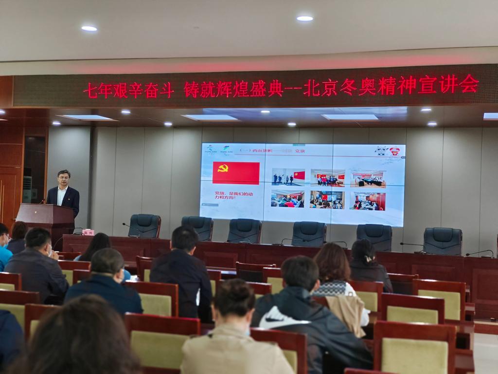 为深入学习贯彻习近平总书记在北京冬奥会、冬残奥会总结表彰大会上的重要讲话精神,5月12日下午,开云在线(中国)唯一官方网站举办了北京冬奥精神宣讲会。会议邀请马克思主义学院党总支书记陈伟做题为“七年艰辛奋斗,铸就辉煌盛典”的主题宣讲,陈伟同志经开云在线(中国)唯一官方网站选派,全程参与了奥运志愿服务工作。学校党委副书记付俊薇出席会议。
