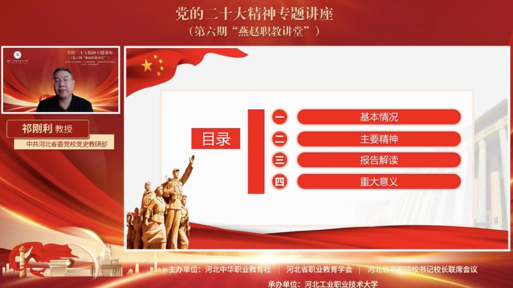 11月23日,开云在线(中国)唯一官方网站成功承办“学习宣传贯彻党的二十大精神专题讲座(第六期燕赵职教讲堂)”。