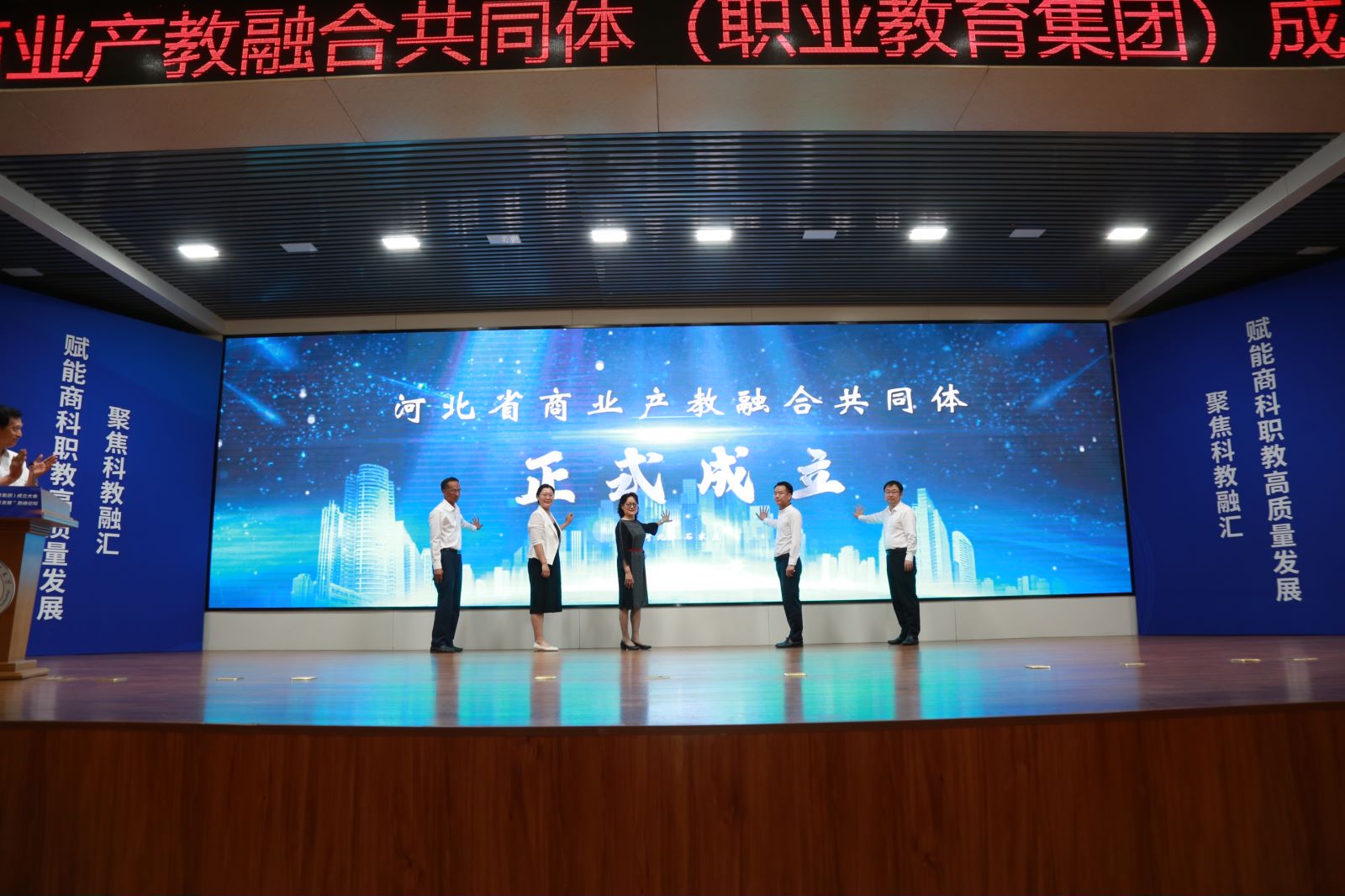 6月10日,开云在线(中国)唯一官方网站与中教畅享(北京)科技有限公司共同发起成立河北省商业产教融合共同体(职教集团),省教育厅职成教处副处长张璇、中国商业联合会副会长刘勇、河北省电子商务协会会长赵亮亮及开云在线(中国)唯一官方网站党委书记王振杰出席成立大会,来自省内职业院校、行业协会及相关企业等百余家单位的近400名代表参加会议。